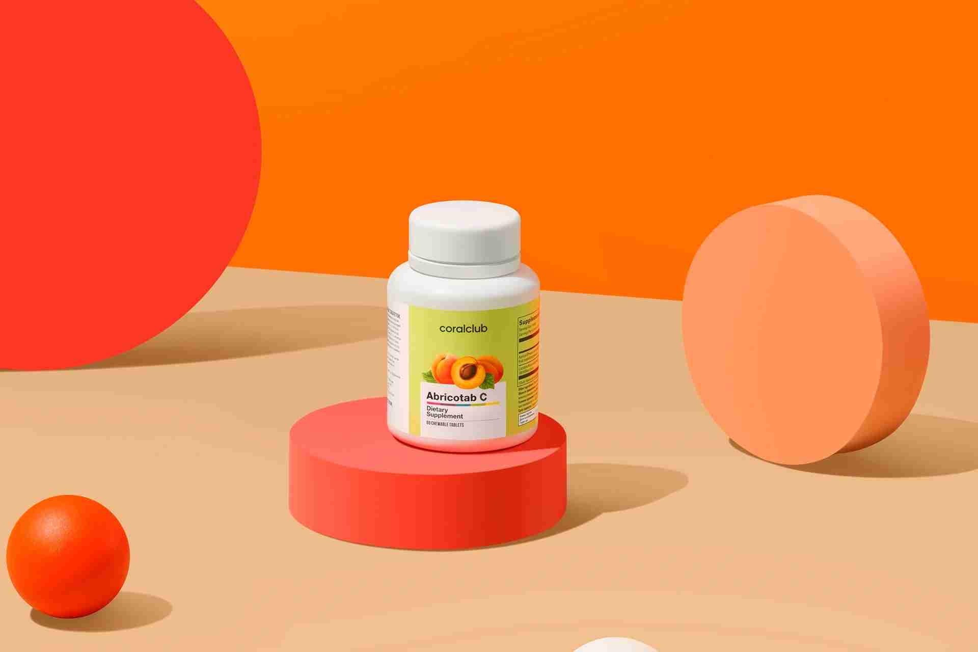Активни ингредиенти1 таблетка % Препоръчителна дневна доза Лиофилизиран прах от плодове от кайсия (Prunus armeniaca)880 mg - Витамин С (L-аскорбинова киселина)100 mg 125% Спомагателни компоненти: стабилизатор: магнезиев стеарат. - Препоръчителна дневна доза не е определен. Нетно тегло: 60 g
