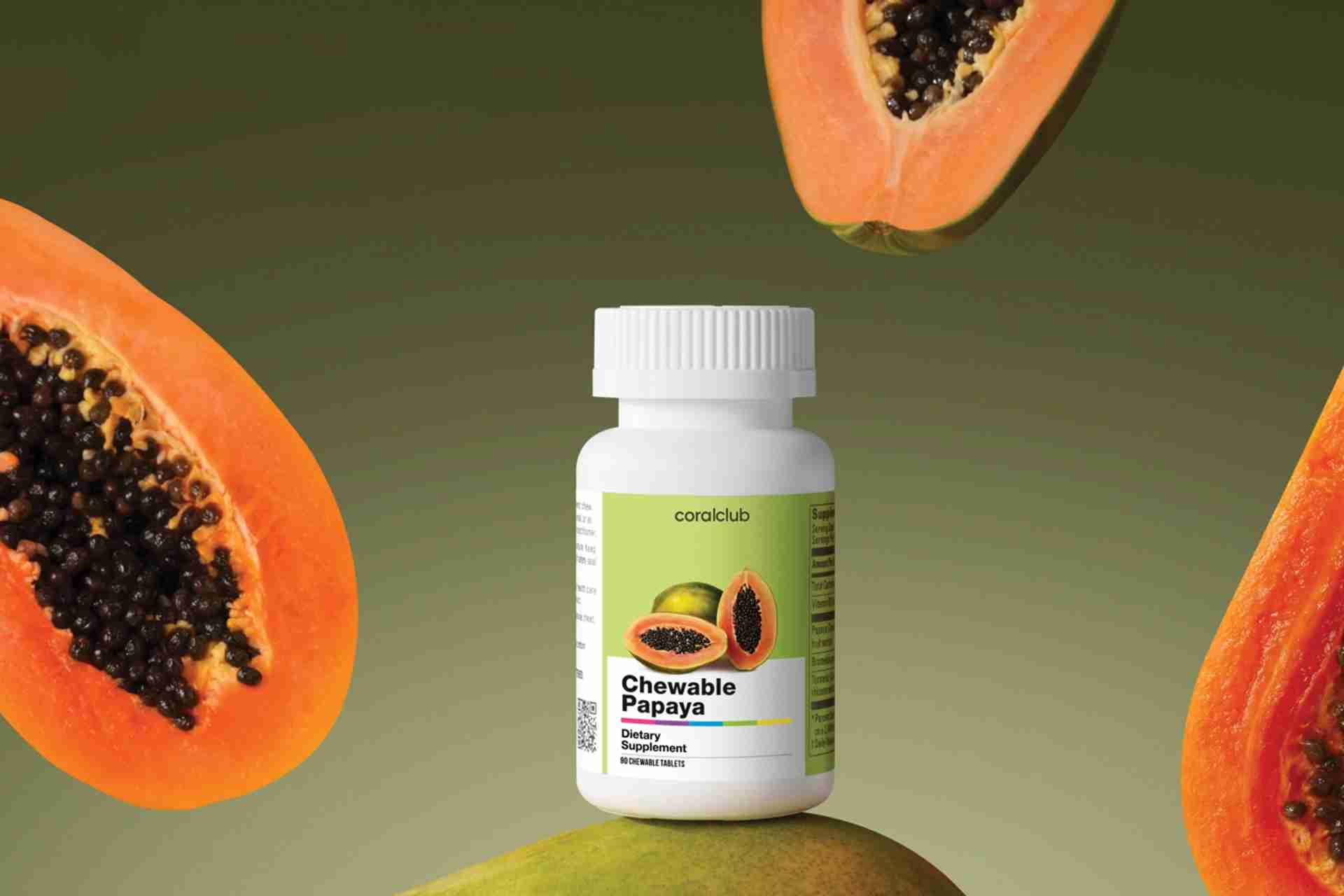 Сочната пулпа на папаята съдържа витамини, минерали и растителни ензими, сред които най-ценен е папаинът. Както и бромелаинът, така и папаинът се отнася към протеолитичните ензими и подобрява смилането и усвояването на протеиновата храна.