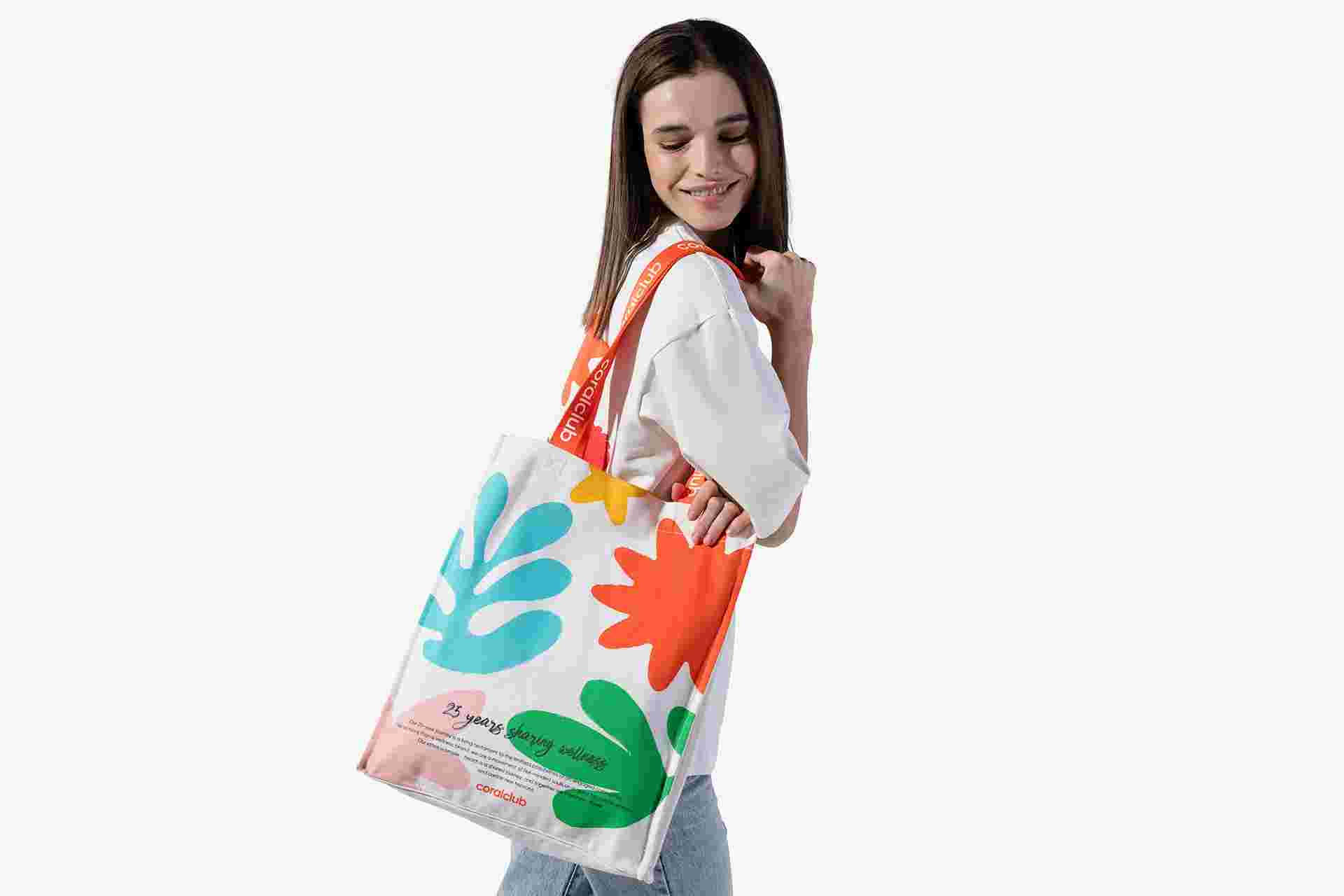 Яркият принт от двете страни на чантата отразява нашите ключови източници на вдъхновение - символите на природата, здравето и наситения живот.